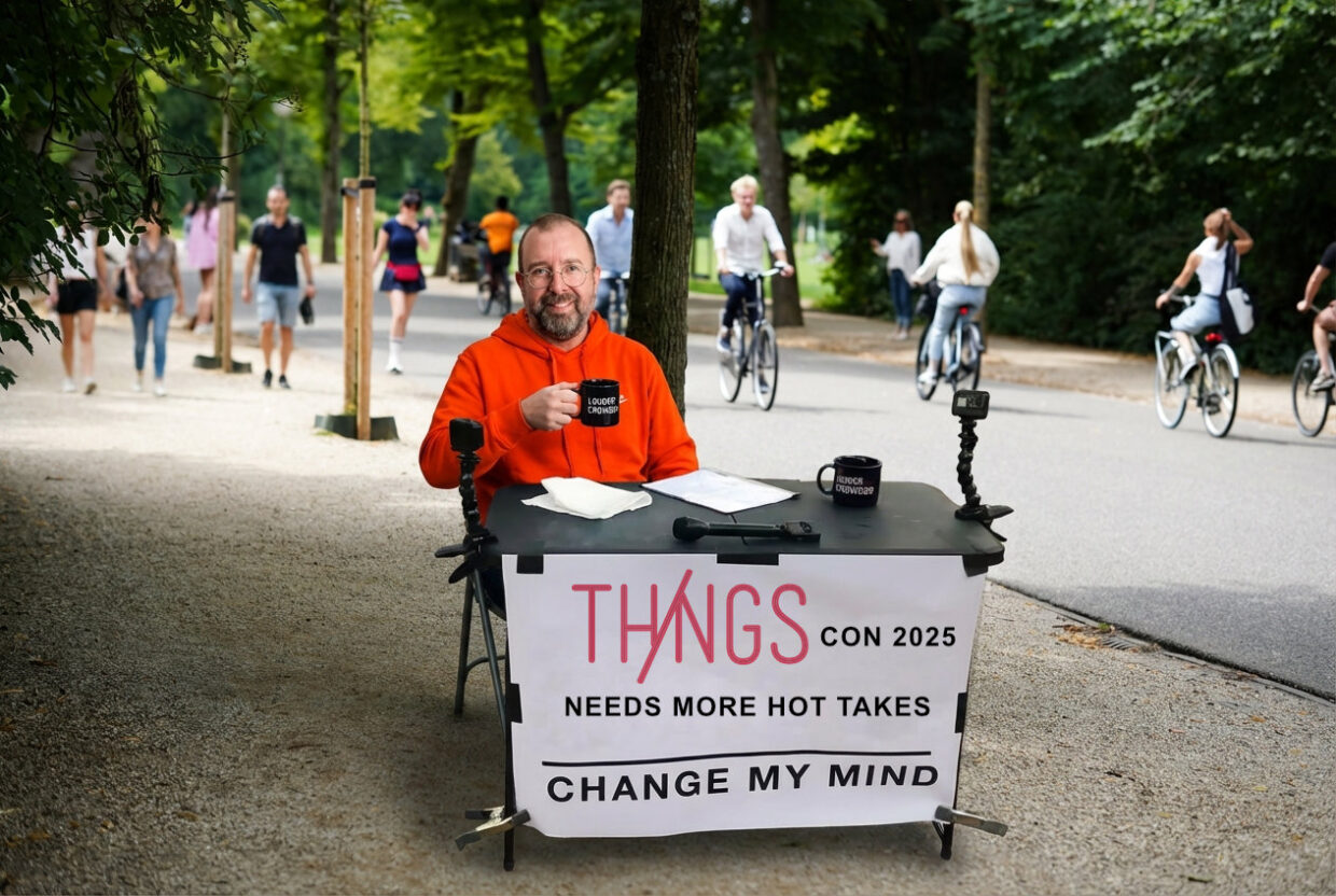 This year I had the privilege to contribute to the ThingCon conference for the first time. My choice: ask for the insights and ‘Hot Takes’ of the participants. This became the ‘Hot Takes’ booth, where I recorded short, spiffy interviews with everybody who dared to go against the grain and share their pet peeves.